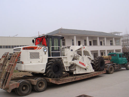 圖為一臺WR2300L路面冷再生機(jī)披紅掛彩,正在從我公司內(nèi)發(fā)運(yùn)。