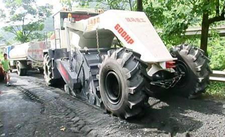 懷化市2013年的兩段冷再生工程分別是G320國道洪江段和S222省道靖州段,兩段工程總大修里程超過60公里。在項(xiàng)目調(diào)研階段,我公司會同河南隆裕工程公司經(jīng)實(shí)地考察,認(rèn)為兩段路雖屬干線公路,但路基的損壞較嚴(yán)重,路基強(qiáng)度屬中等強(qiáng)度,冷再生機(jī)施工強(qiáng)度不高,鑒于兩段路均屬丘陵山地,坡道多,彎道多,施工管理難度較大,需要加強(qiáng)現(xiàn)場管理。