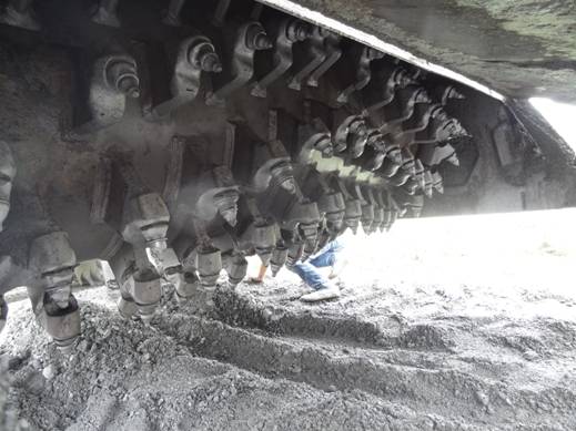 2014年6月,我公司冷再生機(jī)首次進(jìn)入四川施工。先進(jìn)入四川的是一臺(tái)600馬力WR2300L冷再生機(jī),由河南隆裕工程公司于2011年向我公司購(gòu)買(mǎi),已工作了近四年,機(jī)器狀態(tài)仍然很好。冷再生工程為郫縣唐太路道路改造工程,主要路基的大修采用冷再生工藝。唐太路為水穩(wěn)路基結(jié)構(gòu),與華東等大部分地區(qū)不同的是路基下有大量的鵝卵石,這會(huì)對(duì)銑刨轉(zhuǎn)子造成很大的磨損,如果機(jī)器不是裝備了可折卸刀庫(kù)重型轉(zhuǎn)子,這個(gè)工程是不可能做下去的,刀具的損耗很大,齒套也有較大的磨損。施工隊(duì)伍在高經(jīng)理的帶領(lǐng)下,無(wú)論是施工速度還是施工質(zhì)量均獲得管理方的好評(píng),打消了承包方最初對(duì)國(guó)產(chǎn)設(shè)備的疑慮。