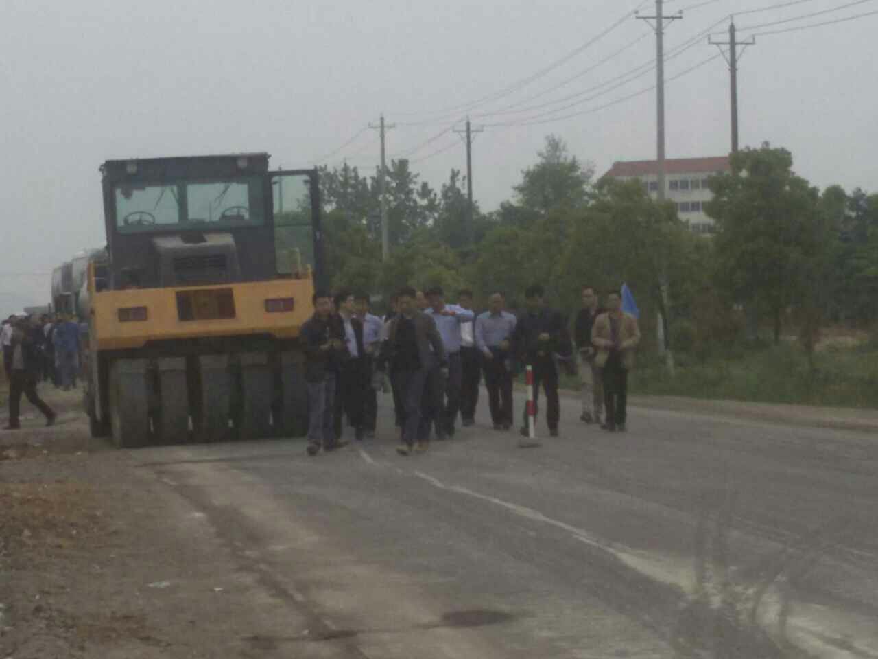 圖為荊門市委書記,湖北省公路局局長,京山縣公路局局長現(xiàn)場觀摩指導(dǎo)工作。